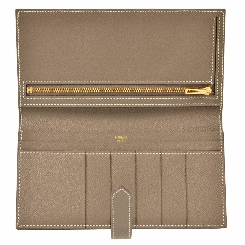 3. エルメス HERMES ベアン スフレ 長財布 ヴォーエプソン Y刻印 エトゥープ ゴールド金具【中古】