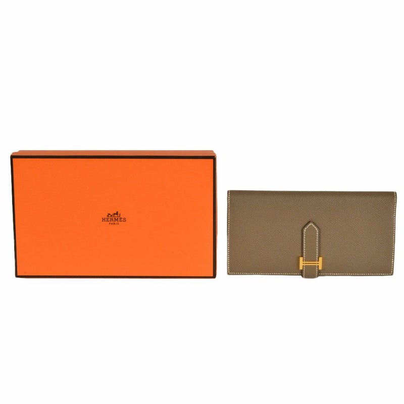 4. エルメス HERMES ベアン スフレ 長財布 ヴォーエプソン Y刻印 エトゥープ ゴールド金具【中古】
