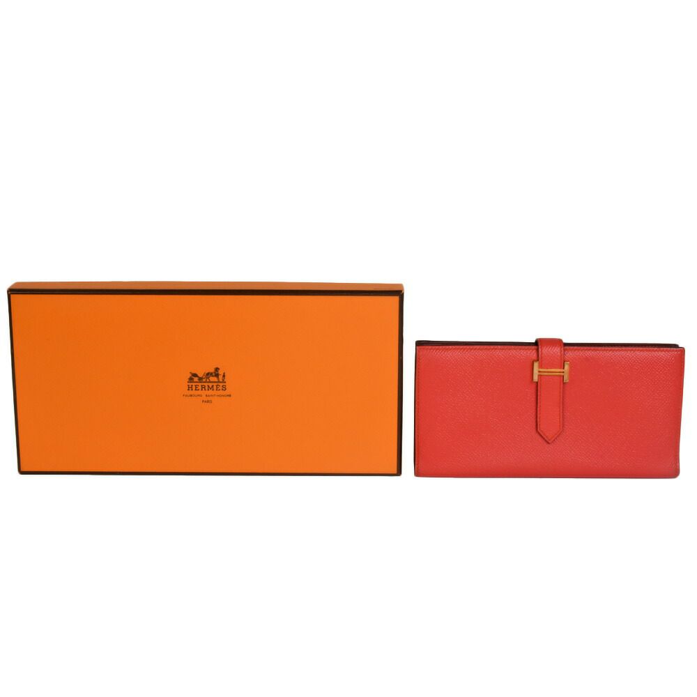 3. エルメス HERMES ベアン スフレ ヴェルソ 長財布 ヴォーエプソン C刻印(2018年製造)刻印 カプシーヌ ゴールド金具 オレンジ系 バイカラー【中古】