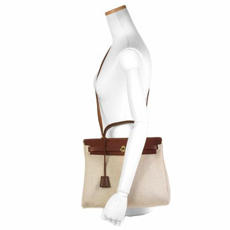 4. エルメス HERMES エールバッグPM 2WAY ハンドバッグ ショルダーバッグ ブラウン/ベージュ トワル地/レザー □E刻印(2001年製)【中古】