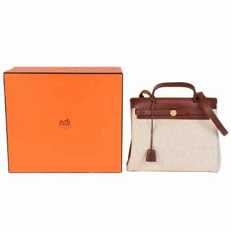 3. エルメス HERMES エールバッグPM 2WAY ハンドバッグ ショルダーバッグ ブラウン/ベージュ トワル地/レザー □E刻印(2001年製)【中古】