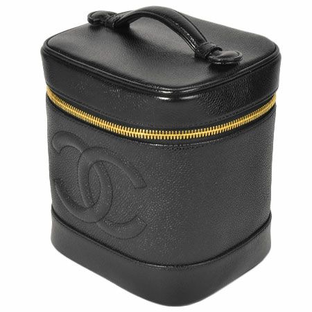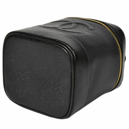 送料無料 シャネル CHANEL バニティバッグ キャビアスキン ココマーク ブラック コスメ 化粧ポーチ ヴィンテージ A01998【中古】
