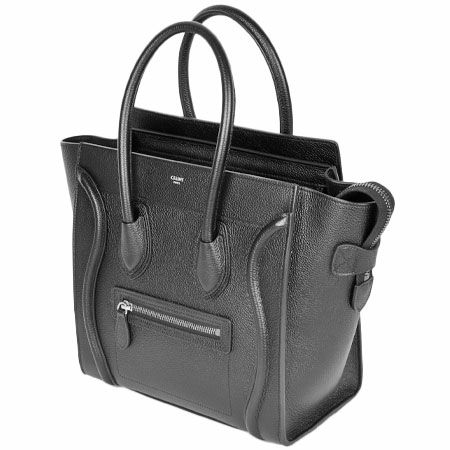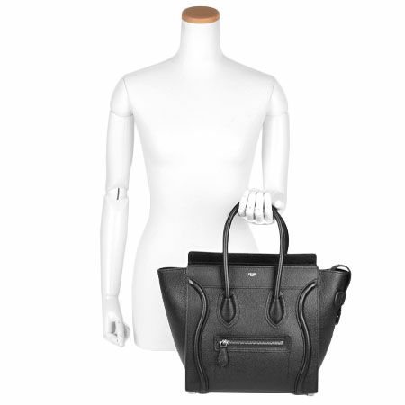 送料無料 セリーヌ CELINE ラゲージ マイクロ ショッパー ハンドバッグ ドラムドカーフスキン ブラック シルバー金具 189793DRU.38NO【中古】