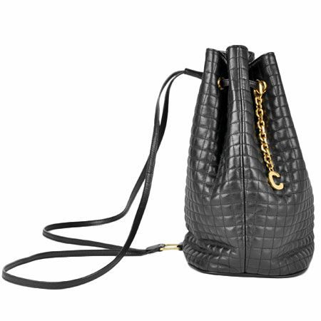 送料無料 セリーヌ CELINE バックパック スモール Cチャーム キルティング レザー ブラック【中古】