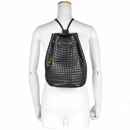 4. セリーヌ CELINE バックパック スモール Cチャーム キルティング レザー ブラック【中古】