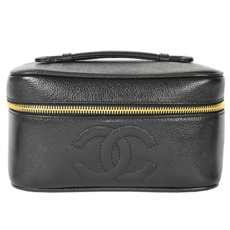 送料無料 シャネル CHANEL バニティバッグ キャビアスキン ココマーク ブラック ゴールド金具 コスメ 化粧ポーチ ヴィンテージ A01997【中古】
