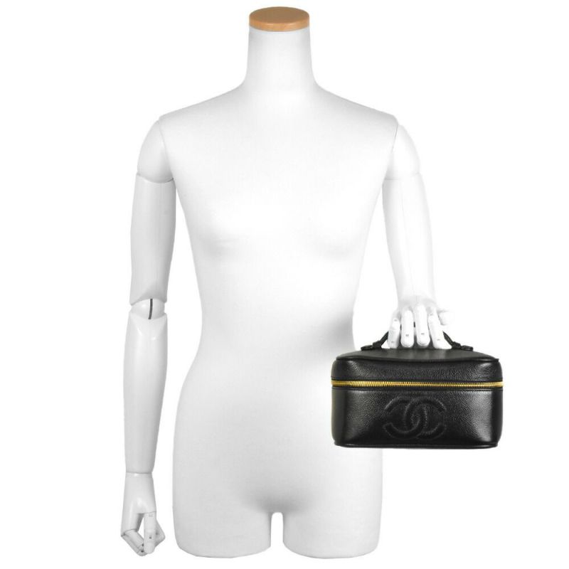 3. シャネル CHANEL バニティバッグ キャビアスキン ココマーク ブラック ゴールド金具 コスメ 化粧ポーチ ヴィンテージ A01997【中古】