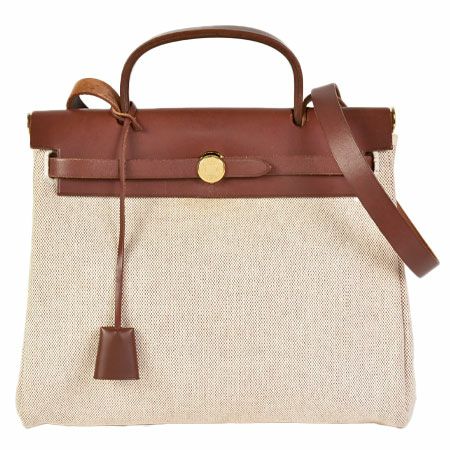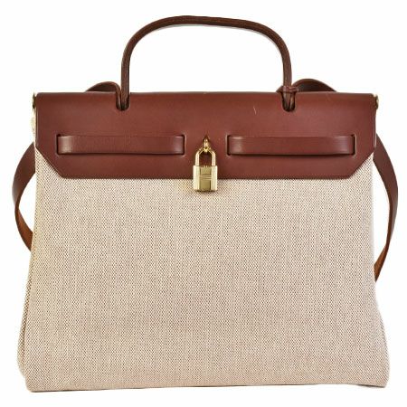 送料無料 エルメス HERMES エールバッグPM 2WAY ハンドバッグ ショルダーバッグ ブラウン/ベージュ トワル地/レザー □E刻印(2001年製)【中古】