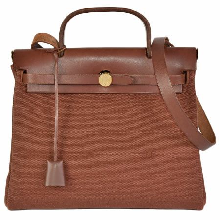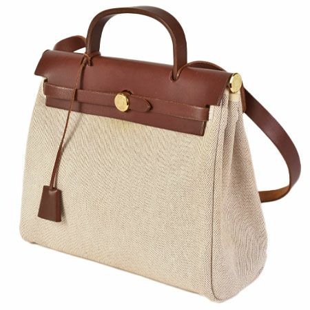 3. エルメス HERMES エールバッグPM 2WAY ハンドバッグ ショルダーバッグ ブラウン/ベージュ トワル地/レザー □E刻印(2001年製)【中古】