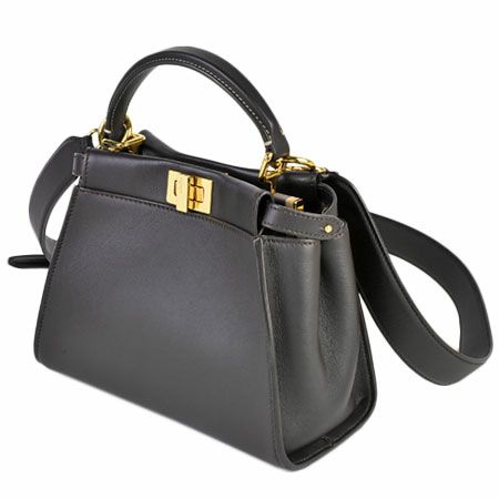 3. フェンディ FENDI ピーカブー ミニ ハンドバッグ ペカン 2WAY ストラップ付 レザー ダークブラウン 8BN244 AAFLF 19TW【中古】
