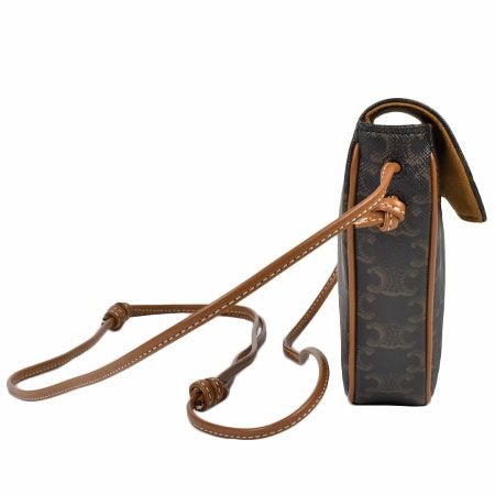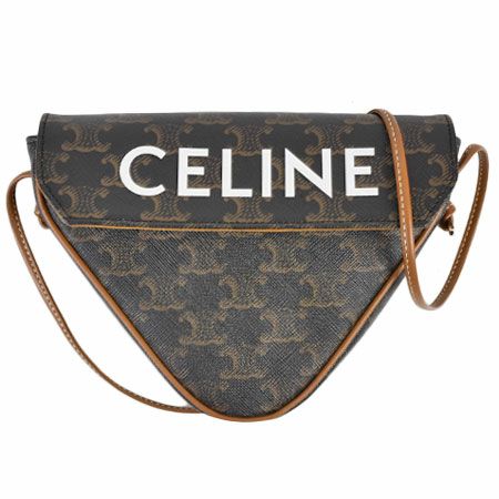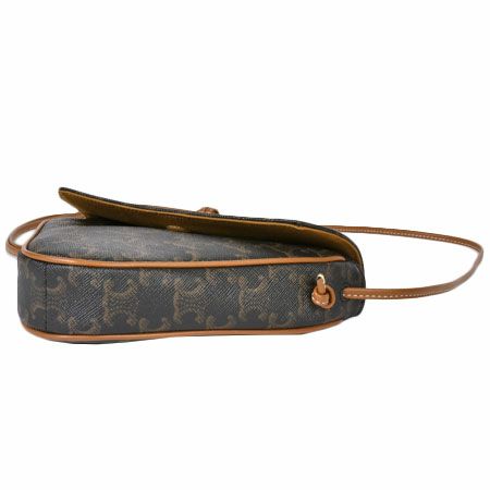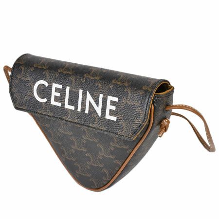 送料無料 セリーヌ CELINE トリオンフ キャンバス ショルダーバッグ トライアングル ロゴプリント クロスボディバッグ ポシェット ブラウン 195902【中古】