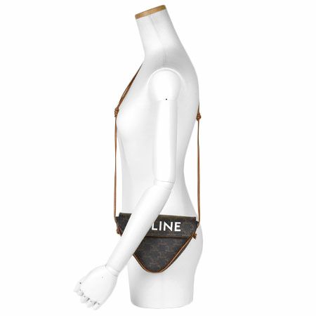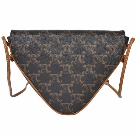 4. セリーヌ CELINE トリオンフ キャンバス ショルダーバッグ トライアングル ロゴプリント クロスボディバッグ ポシェット ブラウン 195902【中古】
