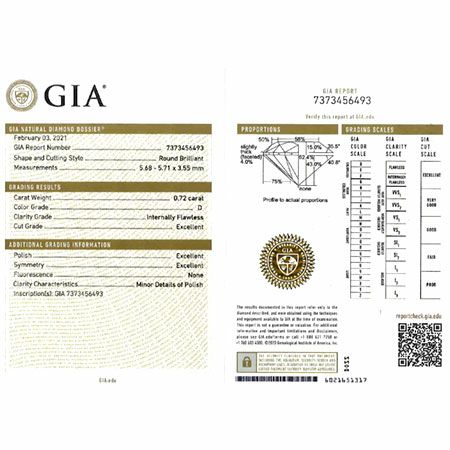 ダイヤモンド:0.72ct(D/IF/3EX)