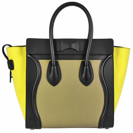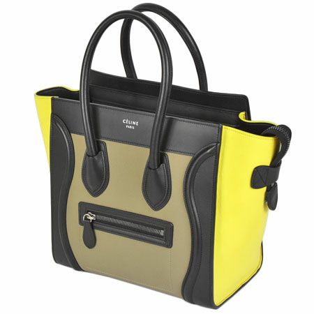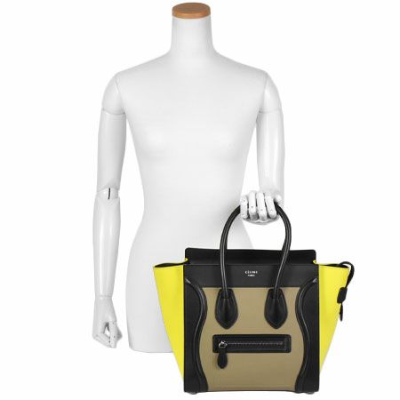 送料無料 セリーヌ CELINE ハンドバッグ ラゲージ マイクロショッパー トリコロール ブラック イエロー グレージュ レザー シルバー金具 167793【中古】