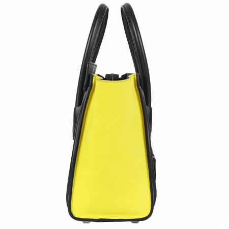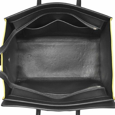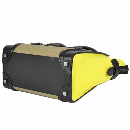 4. セリーヌ CELINE ハンドバッグ ラゲージ マイクロショッパー トリコロール ブラック イエロー グレージュ レザー シルバー金具 167793【中古】