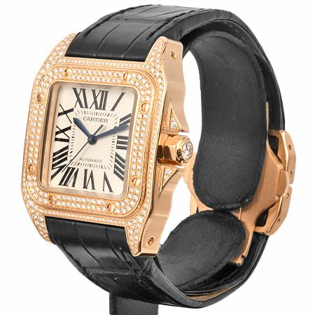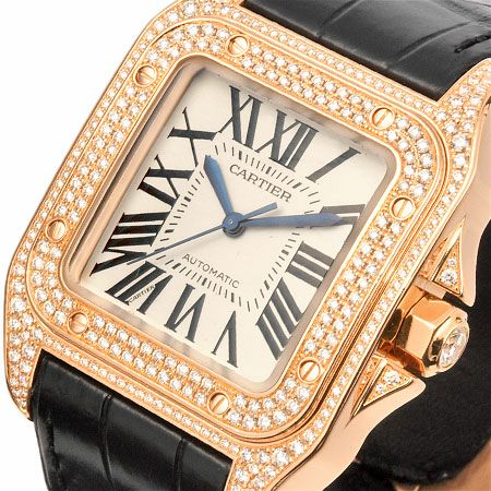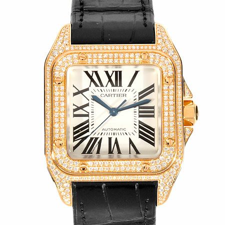 - カルティエ Cartier サントス 100 MM ダイヤベゼル K18PG メンズ 時計 自動巻き シルバー文字盤 WM502151【中古】