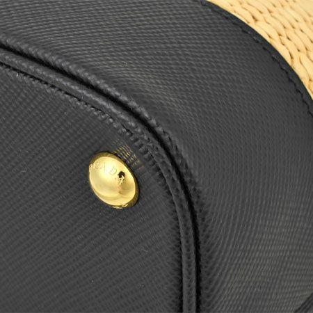 3. プラダ PRADA パニエ ミディアム ショルダーストラップ付 2WAY ハンドバッグ サフィアーノ レザー ストロー ブラック 1BA212【中古】