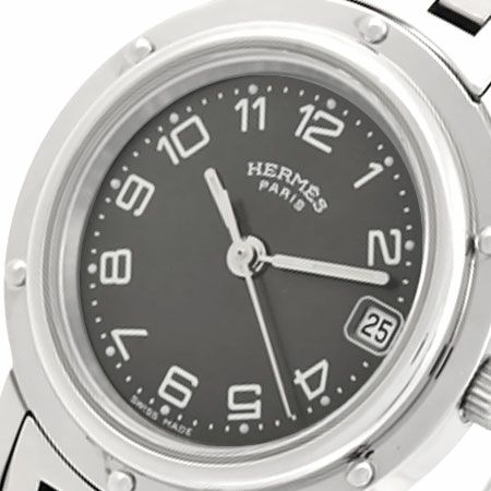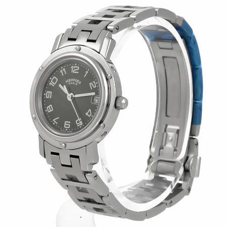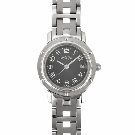 3. エルメス HERMES クリッパー デイト SS レディース クォーツ 時計 黒文字盤 CL4.210【中古】
