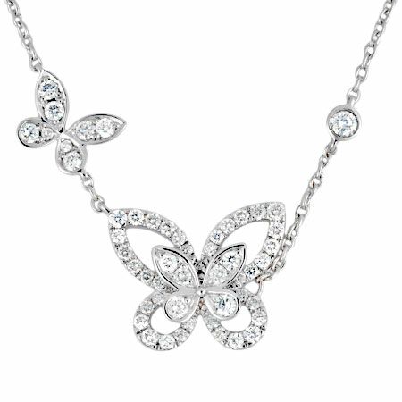 3. グラフ GRAFF ダブル バタフライ シルエット ダイヤモンド ペンダント K18WG ネックレス【中古】
