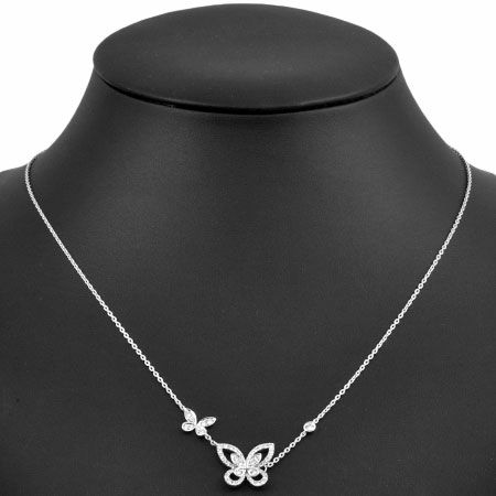 4. グラフ GRAFF ダブル バタフライ シルエット ダイヤモンド ペンダント K18WG ネックレス【中古】