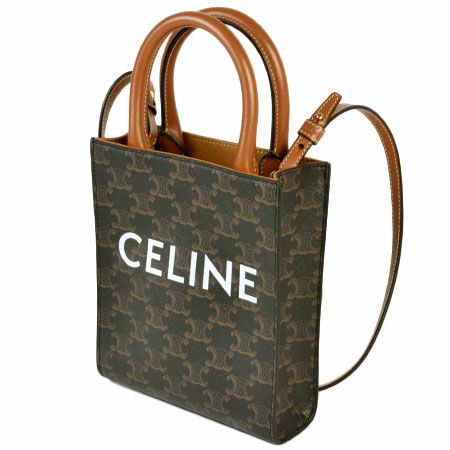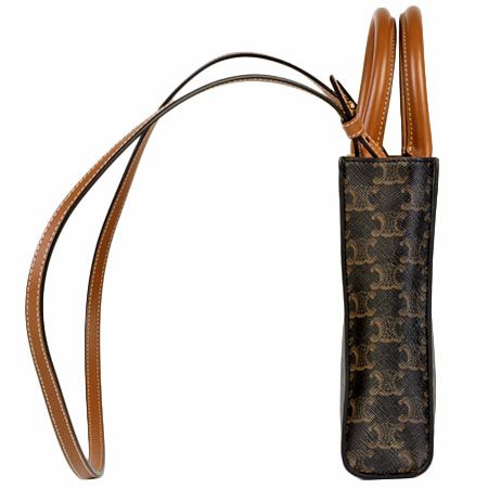3. セリーヌ CELINE 2WAY ハンドバッグ ミニ バーティカルカバ ストラップ付 トリオンフ キャンバス タン 194372【中古】