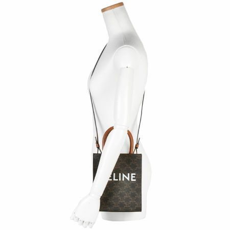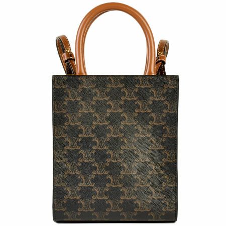 5. セリーヌ CELINE 2WAY ハンドバッグ ミニ バーティカルカバ ストラップ付 トリオンフ キャンバス タン 194372【中古】