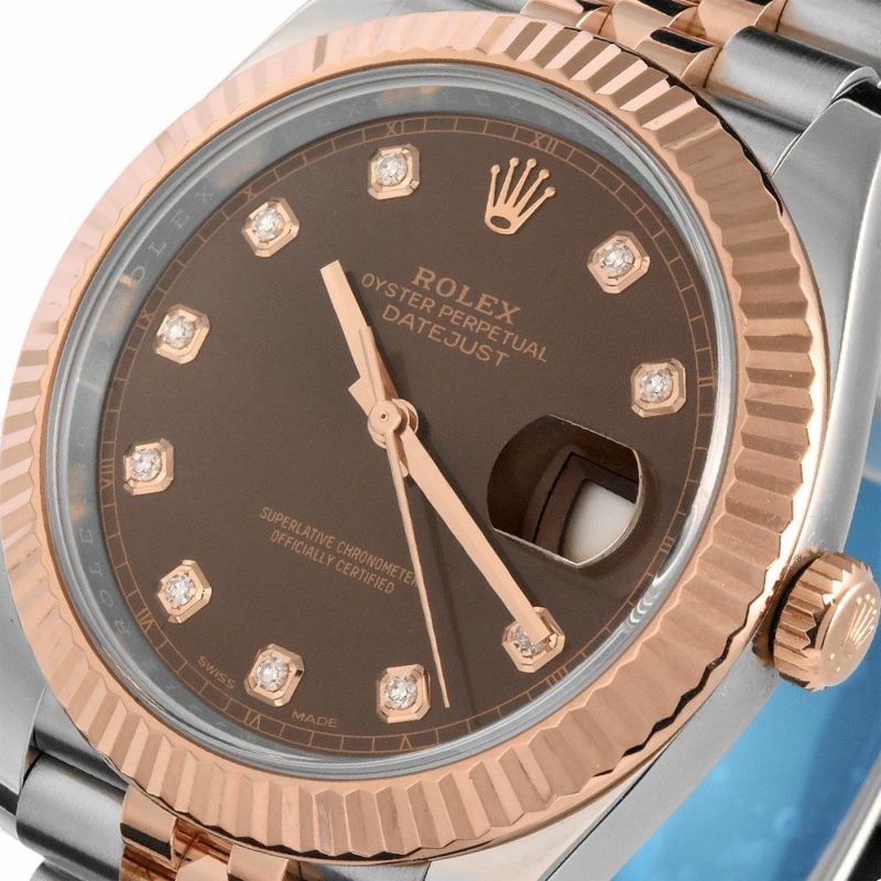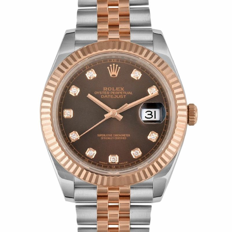 - ロレックス ROLEX デイトジャスト 41 126331G 10Pダイヤインデックス K18RG×SS ランダム番 メンズ 腕時計 自動巻き チョコレート文字盤【中古】