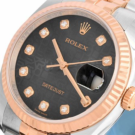 - ロレックス ROLEX デイトジャスト 116231G 10Pダイヤ K18PG×SS コンビ ランダム メンズ 自動巻き 時計 ブラックコンピューター文字盤【中古】