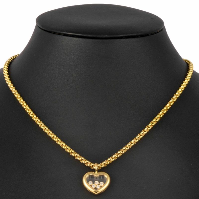 送料無料 ショパール Chopard ハッピーダイヤモンド ハート 5P ムービングダイヤ ペンダント ネックレス K18YG 79/4612【中古】