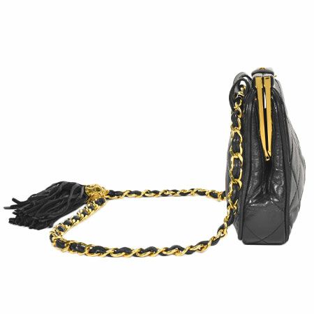 3. シャネル CHANEL マトラッセ ココマーク チェーンストラップ付 ハンドバッグ タッセル がま口 ウェストポーチ ブラック ラムスキン ゴールド金具【中古】