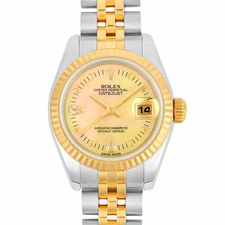 - ロレックス ROLEX デイトジャスト 179173N2BR 2Pダイヤ K18YG×SS コンビ D番 レディース 自動巻き 時計 イエローシェル文字盤【中古】