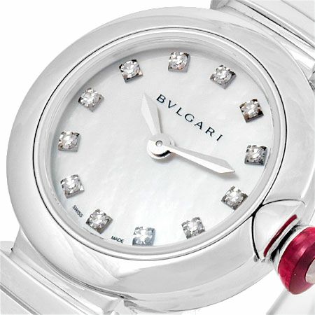 5. ブルガリ BVLGARI ルチェア 12Pダイヤモンド レディース クォーツ 腕時計 SS ホワイトシェル文字盤 LU23S【中古】