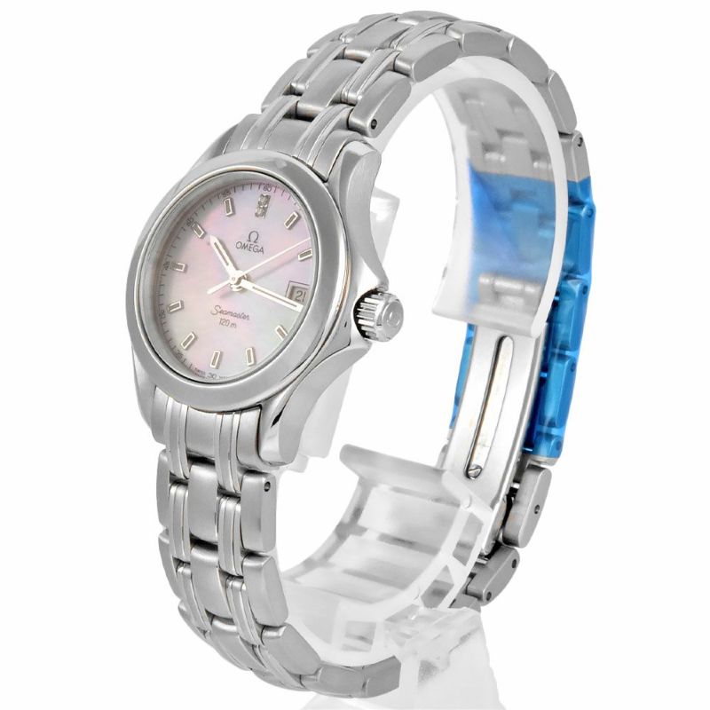 5. オメガ OMEGA シーマスター デイト 120M SS 2P ダイヤモンド レディース クォーツ 時計 ホワイトシェル文字盤 2581.64【中古】