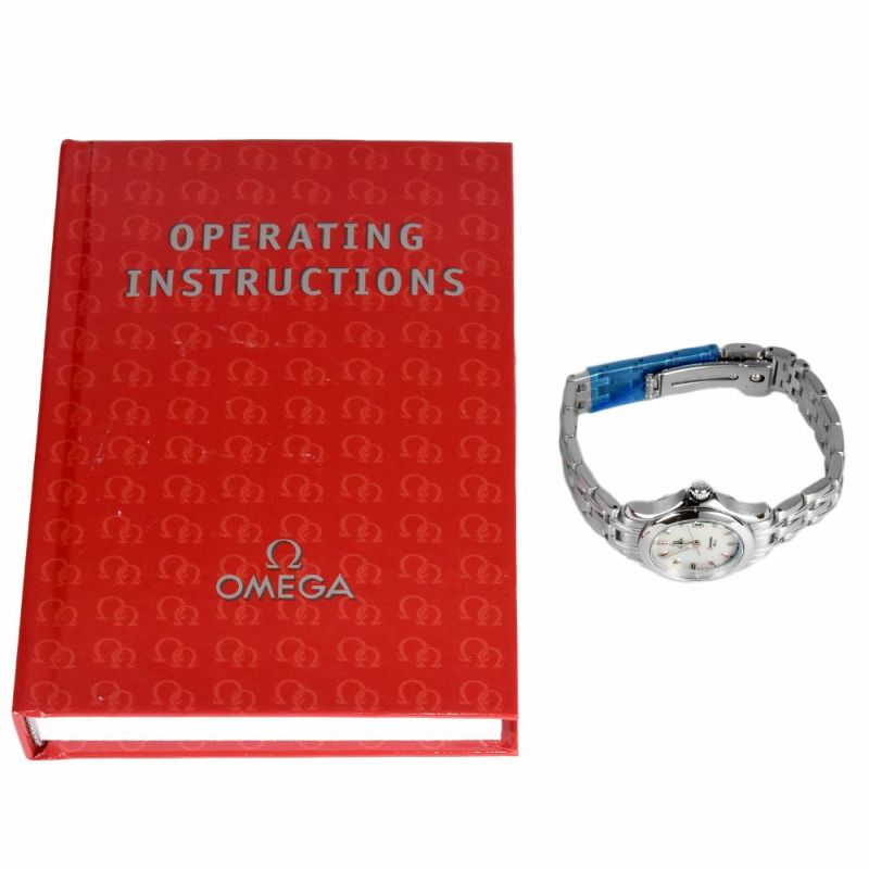 4. オメガ OMEGA シーマスター デイト 120M SS 2P ダイヤモンド レディース クォーツ 時計 ホワイトシェル文字盤 2581.64【中古】