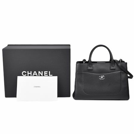送料無料 シャネル CHANEL ネオエグゼクティブトート ショルダーストラップ付 2WAY トートバッグ ソフトキャビアスキン レザー ブラック シルバー金具 A69930【中古】