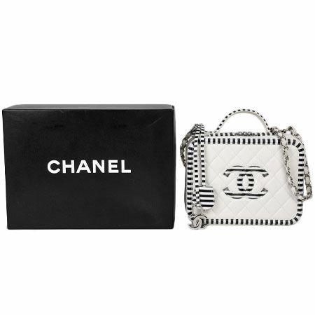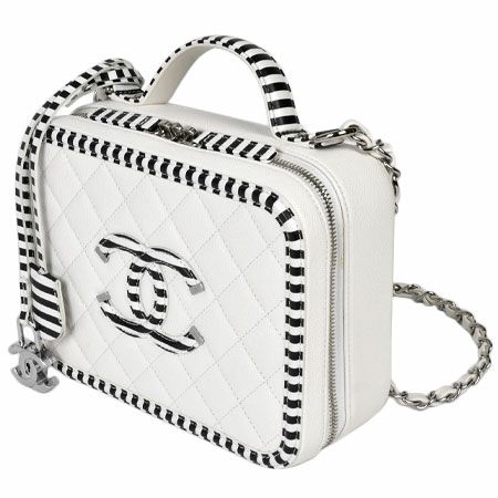 送料無料 シャネル CHANEL チェーンショルダー付 バニティバッグ マトラッセ ホワイト カーフスキン キャビアスキン 2019年クルーズコレクション A93343【中古】
