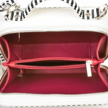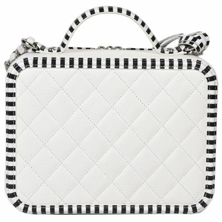 3. シャネル CHANEL チェーンショルダー付 バニティバッグ マトラッセ ホワイト カーフスキン キャビアスキン 2019年クルーズコレクション A93343【中古】