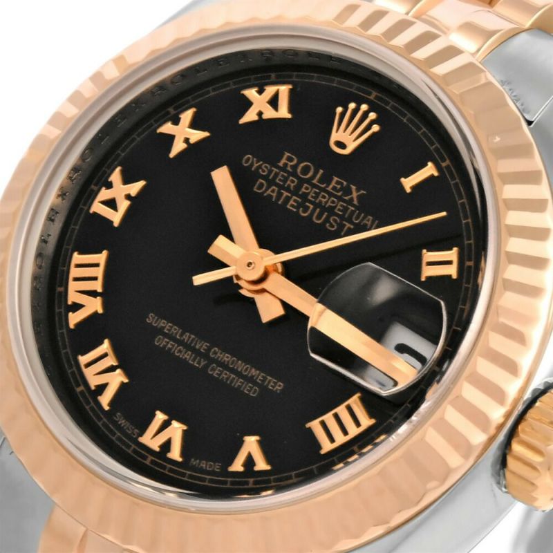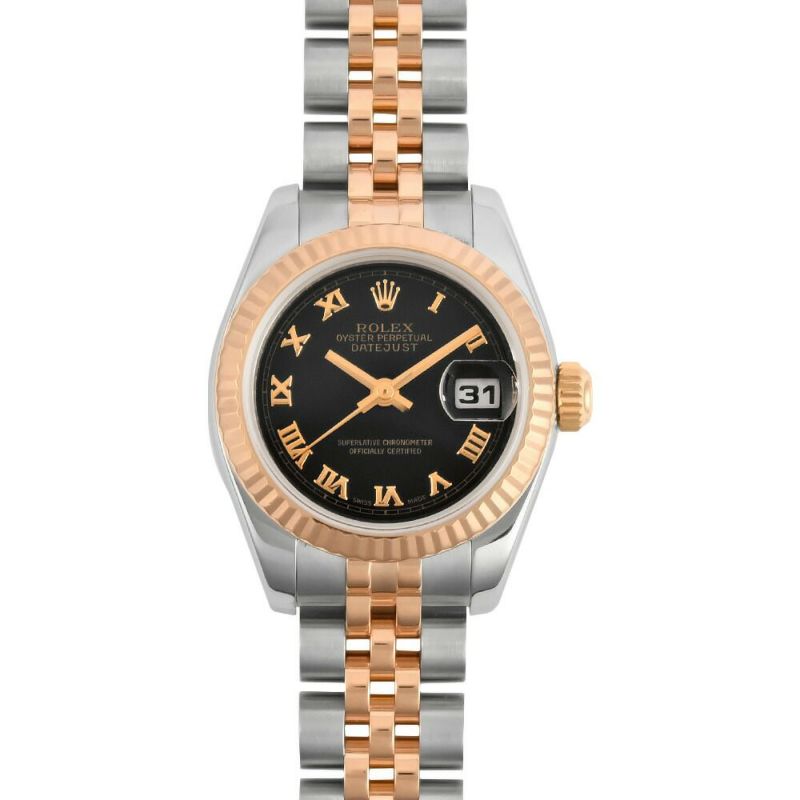 - ロレックス ROLEX デイトジャスト 179171 PG×SS D番 ローマンインデックス ブラック文字盤 レディース 自動巻き 時計【中古】