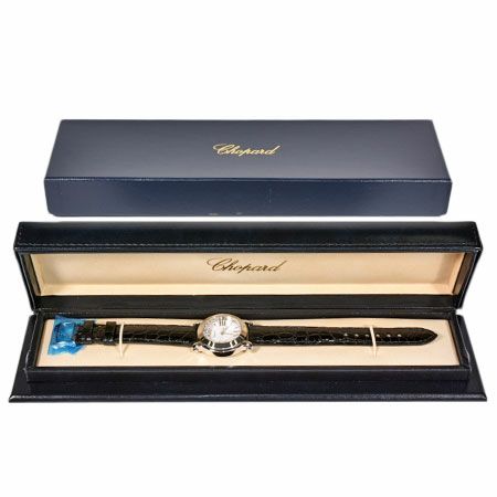 - ショパール Chopard ハッピースポーツ マーク2 5P ダイヤモンド レディース クォーツ 時計 SS 白文字盤 アリゲーターストラップ 278509-3001 27/8509【中古】