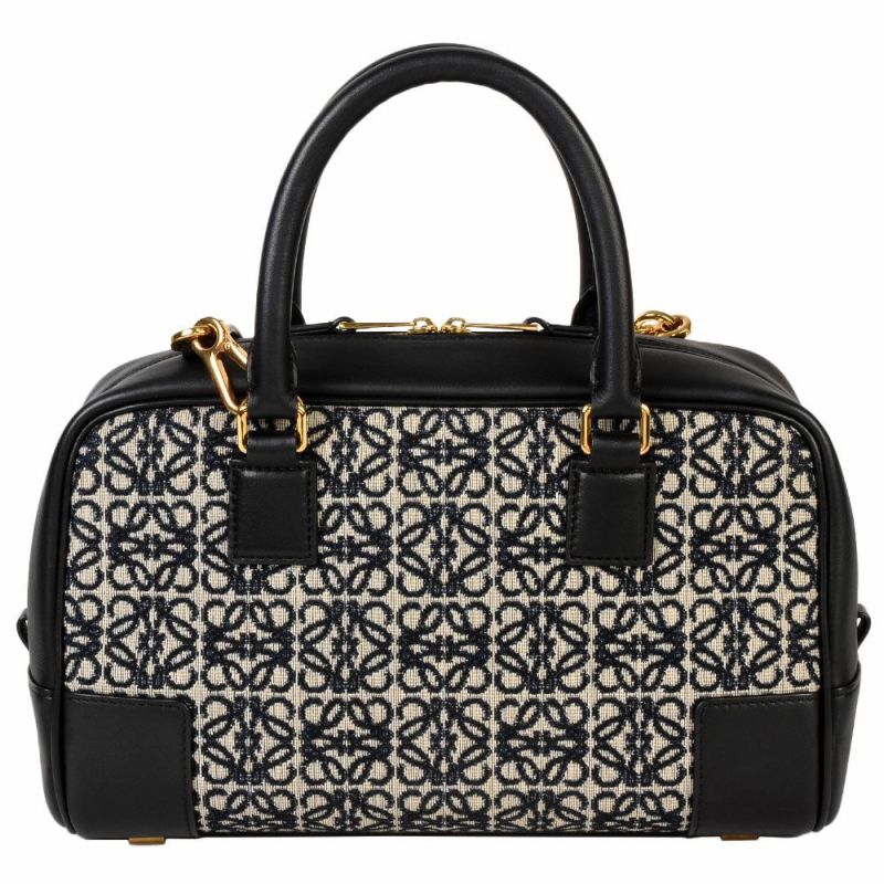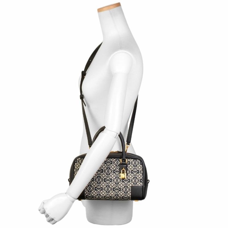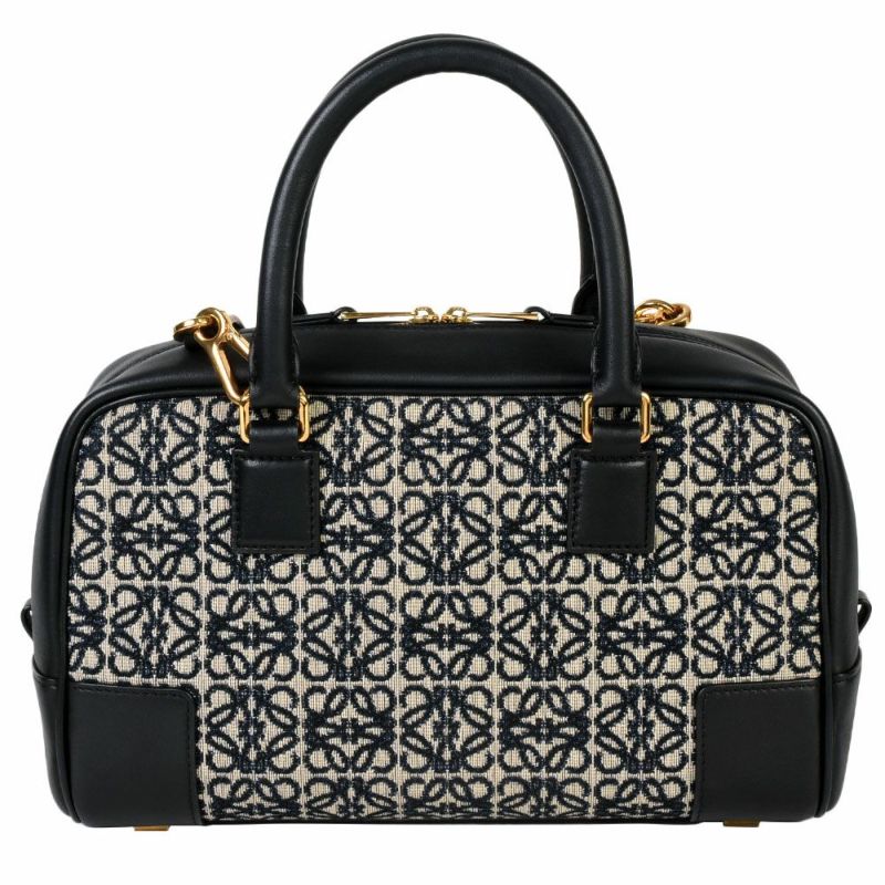 5. ロエベ LOEWE アマソナ23 アナグラムジャカード カーフ ハンドバッグ ショルダーバック 2way レザー ネイビー ブラック【中古】