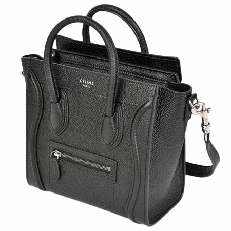 送料無料 セリーヌ CELINE ラゲージ ナノ ショッパー ショルダーストラップ付 2WAY ハンドバッグ ドラムドカーフスキン ブラック シルバー金具【中古】