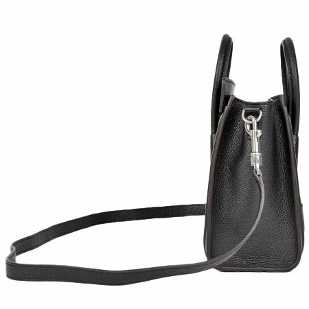 5. セリーヌ CELINE ラゲージ ナノ ショッパー ショルダーストラップ付 2WAY ハンドバッグ ドラムドカーフスキン ブラック シルバー金具【中古】