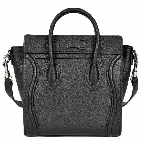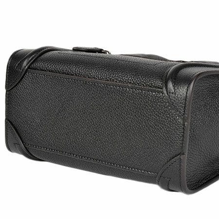 3. セリーヌ CELINE ラゲージ ナノ ショッパー ショルダーストラップ付 2WAY ハンドバッグ ドラムドカーフスキン ブラック シルバー金具【中古】