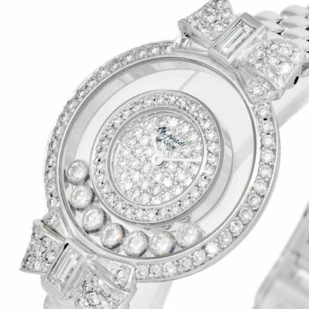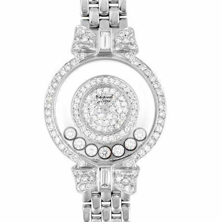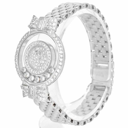 - ショパール Chopard ハッピーダイヤモンド リボン 7P ムービングダイヤ ダイヤベゼル K18YG レディース クォーツ 時計 ダイヤ文字盤 全面ダイヤ 20/5596【中古】