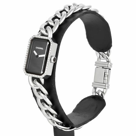 3. シャネル CHANEL プルミエール ダイヤベゼル Mサイズ レディース クォーツ 腕時計 SS 黒文字盤 H3252【中古】