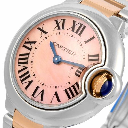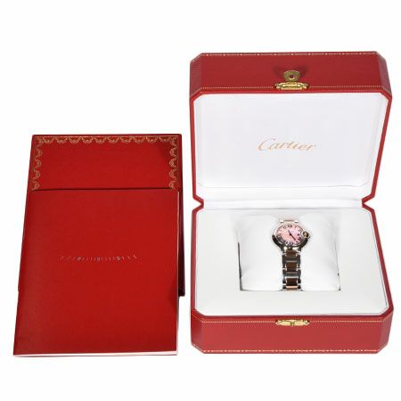 - カルティエ Cartier バロンブルー 28mm SS×PG コンビ レディース 時計 クォーツ ピンクシェル文字盤 W6920034【中古】