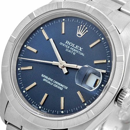 - ロレックス ROLEX オイスターパーペチュアル デイト エンジンターンドベゼル 15210 SS F番 メンズ 自動巻き 時計 ブルー文字盤【中古】
