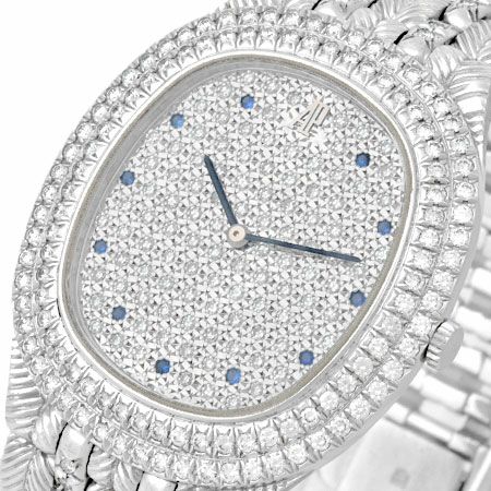 - オーデマピゲ AUDEMARS PIGUET 11P サファイヤ インデックス パヴェ ダイヤモンド 文字盤 ダイヤベゼル K18WG レディース クォーツ 腕時計【中古】