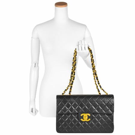 3. シャネル CHANEL マトラッセ34 デカマトラッセ ダブルチェーンショルダーバッグ ココマーク ブラック ゴールド金具 ラムスキン A01094【中古】