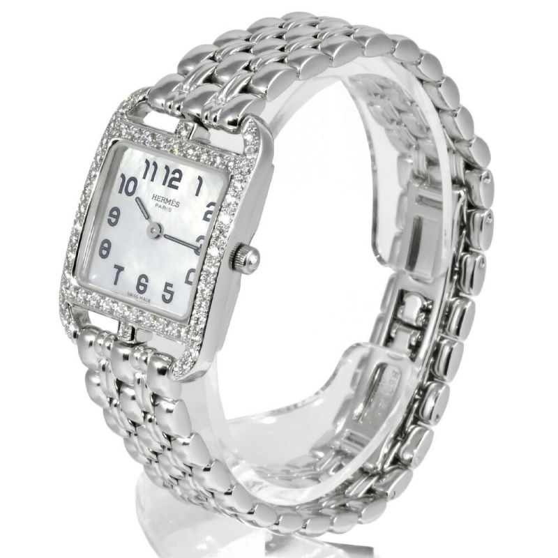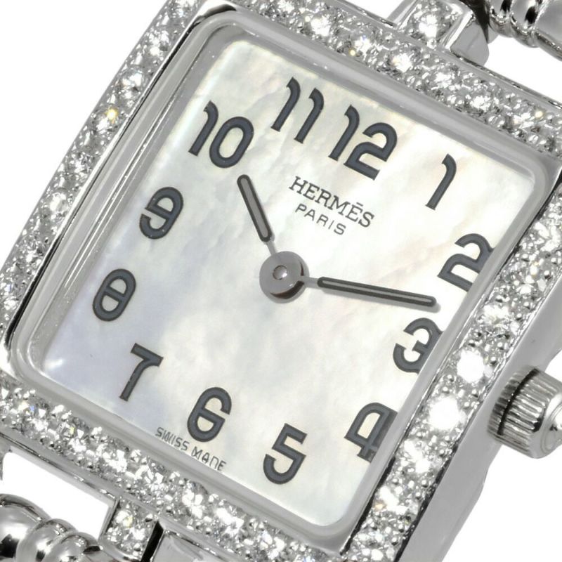 - エルメス HERMES ケープコッド ミニ レディース クォーツ 時計 K18WG 金無垢 ダイヤベゼル ホワイトシェル文字盤 CC1.192.213【中古】